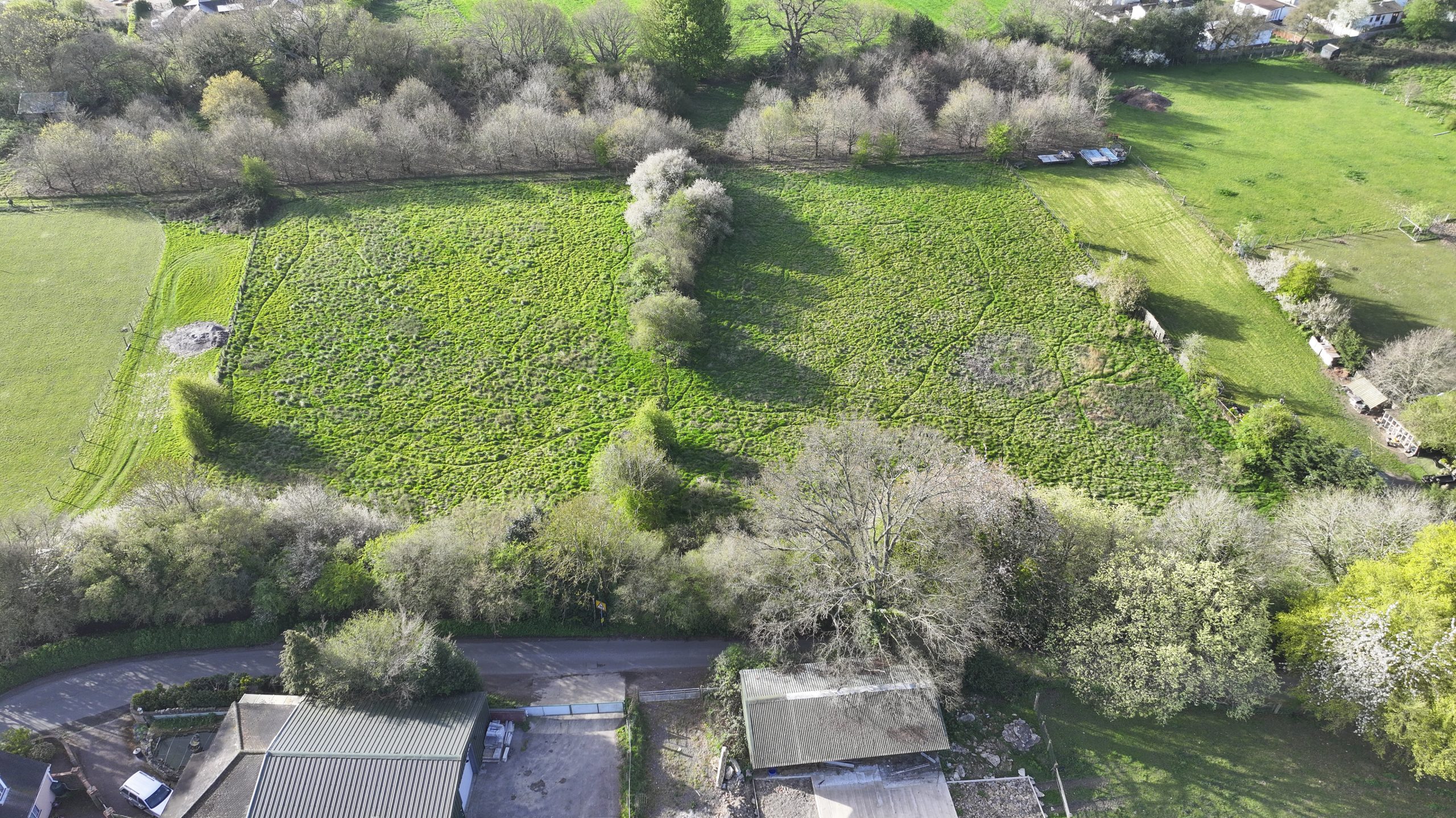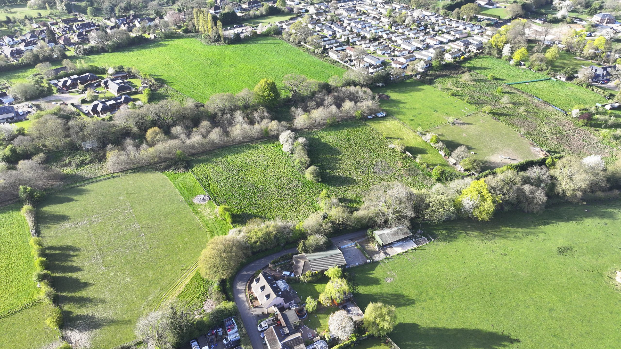 The gated entrance provides controlled access, enhancing both security and exclusivity. The surrounding area is characterised by a mix of countryside and residential properties, making this an appealing prospect for those seeking a strategic land investment or potential future development opportunity.
